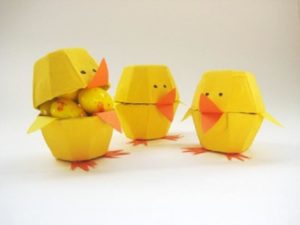 Не менш оригінально на Великдень будуть виглядати курчата, зроблені з картонних упаковок від яєць і покриті кольоровим папером. У дитячому саду діти зможуть зберігати в них приємні дрібниці.