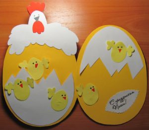 Щоб зробити таку листівку для святкування Великодня в дитячому саду, необхідно: