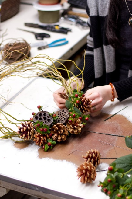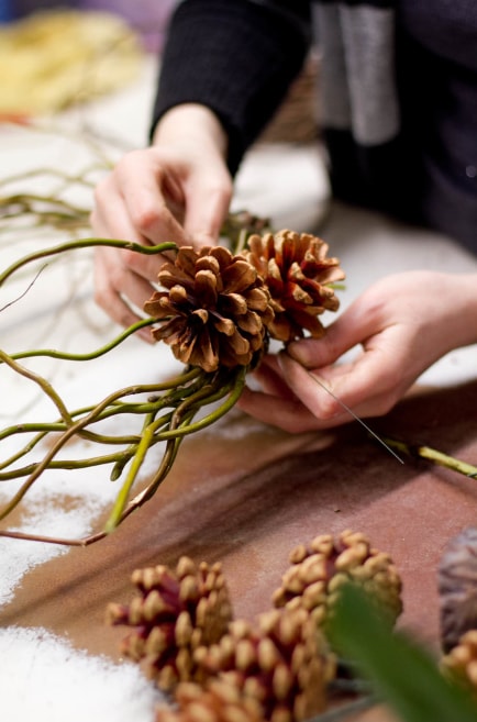 При бажанні можна використовувати більш тонкі гілки та шишки різного розміру.