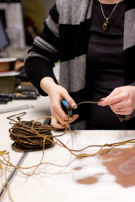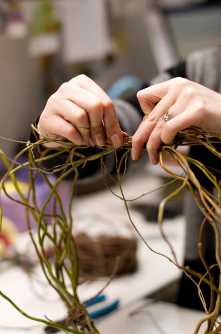 Відрізаємо декоративну флористичний дріт і обмотуємо кілька гілок щільним шаром.