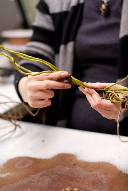 Кілька гілочок звіробою прикріплюємо до місця з’єднання вербових гілок.