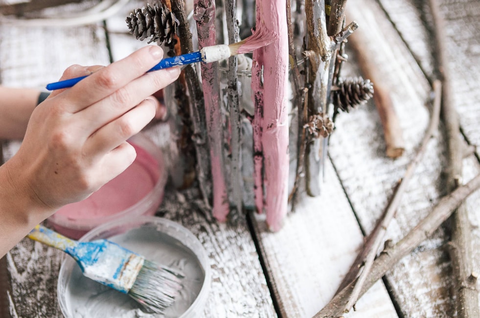 При бажанні можна додатково пофарбувати гілки. В даному випадку використовується акрилова фарба білого кольору.