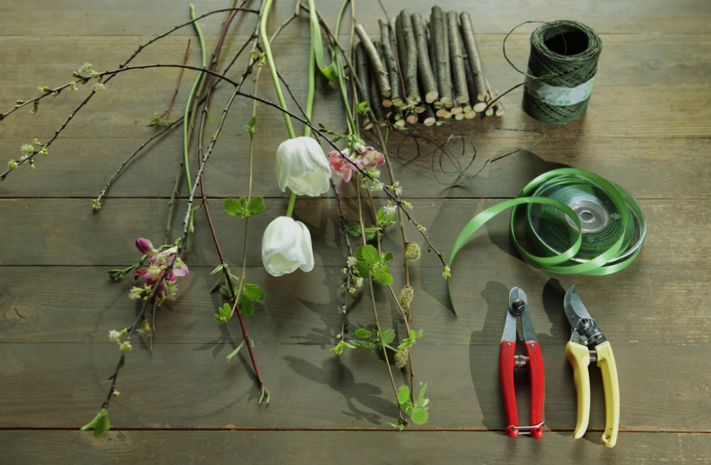 - квіти та гілки з листям;