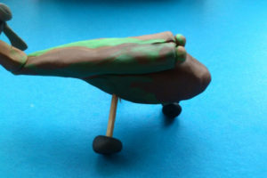 Додатково, використовуючи сірник з закріпленими по боках колесами з чорного пластиліну, роблять подвійне опорне шасі.