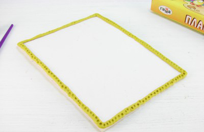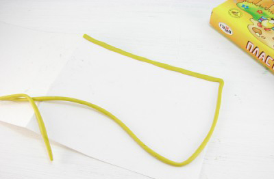З жовтого пластиліну скачують довгий джгут і обрамляють їм лицьову частину листа.