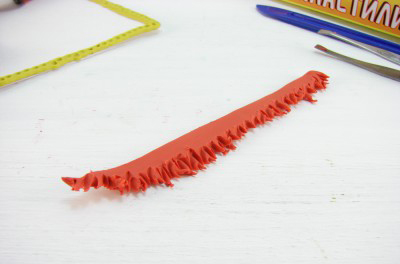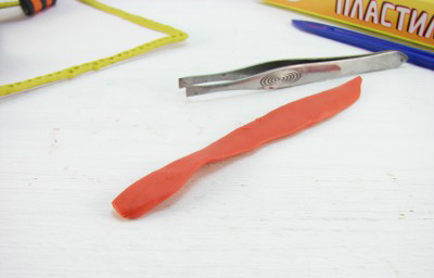 Далі з червоного пластиліну роблять ковбаску, яку згодом треба розкачати.