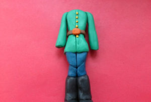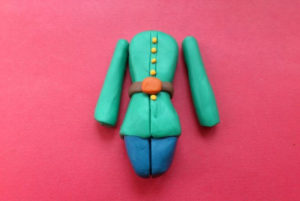 Далі роблять заготовки для галіфе і кітеля. Їх виконують з синього і зеленого пластиліну.