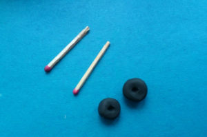 Щоб конструкція трималася міцніше, використовують сірники. Колеса роблять з чорного пластиліну.