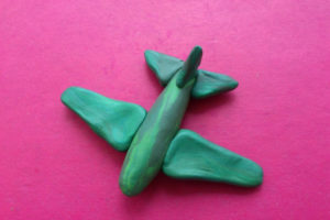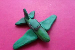 Для створення військового літака до 9 Травня необхідно при собі мати сірий, червоний і два бруски пластиліну зеленого відтінку. Інструкція по створенню вироби: