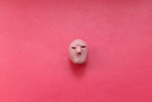 З самого початку виготовляють голову. Для цього з бежевого пластиліну скачують овал і втоптують його знизу. Далі, використовуючи стеку, роблять мітки, де будуть знаходитися очі. Також на основі необхідно прикріпити шматочок пластиліну, надаючи йому форму носа.