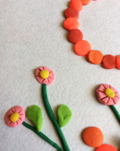 Далі з зеленого пластиліну скачують джгутики різних розмірів і поміщають їх внизу аркуша. Це буде основа букета.