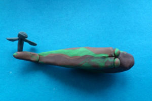 На фінальному етапі до конструкції кріплять лопаті з пластиліну сірого кольору й носову частину.