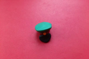 Кашкет роблять із зеленої та червоної коржі. Одну розміщують поверх іншої. Коржик з зеленого пластиліну повинна бути значно більше другий. До червоної частини прикріплюють чорний козирок і жовтий кульки.
