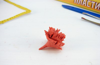 Далі заготівлю скручують, а нижню частину витягають, надаючи їй форму бутона. Таких міні-гвоздик потрібно 8 штук.