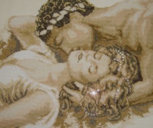 Для тих, хто не може завагітніти, є спеціальні вишивальні повір’я, що зображати на картині. В першу чергу це лелеки – сімейство, що несе в дзьобі згорток з дитиною або поодинці на даху. Крім того, радять вибирати сюжети картин, де зображуються тварини з дитинчатами, але ні в якому разі не самотні.