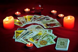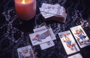 Гадають строго за круглим столом. В центрі потрібно поставити свічку, а навколо розкласти колоду колом. З кола витягують дві карти і дивляться на масті: