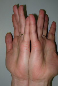 Одна чітка і довга смуга вказує на щасливе і тривале спільне життя з коханою людиною. Зустріч з чоловіком в цьому випадку буде уготована самою долею. Власниці такого візерунка не шукають зв’язків на стороні, так як вони повністю задоволені своїм чоловіком.