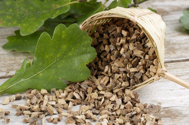 Для ванночок беремо 0,5 л води і 3 ст. ложки кори дуба, проварюємо протягом 20 хвилин і наполягаємо пару годин. Потім відвар проціджуємо і у співвідношення 1:1 додаємо в гарячу воду. Ноги добре промиваємо з милом, а тільки потім опускаємо їх у ванну