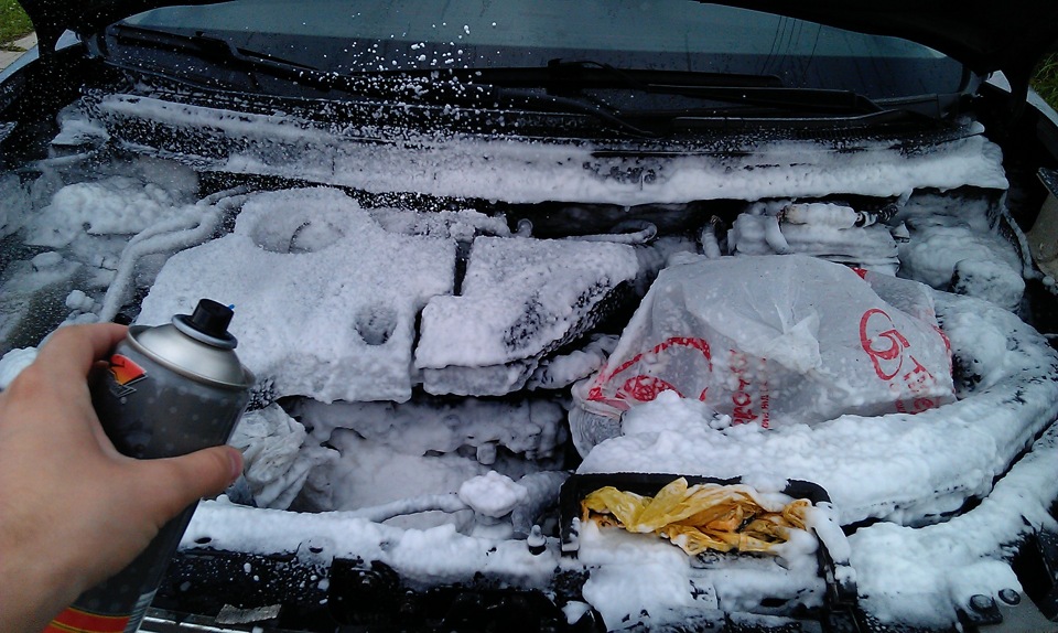 Для чищення двигуна краще вибирати спеціалізовані засоби, які можна купити в будь-якому автомобільному магазині. Подібні засоби здатні очистити масляні сліди, підгорілі сольові плями та іншу бруд, що скупчився під капотом машини. Крім того, вони не шкодять пластикових і гумових елементів.