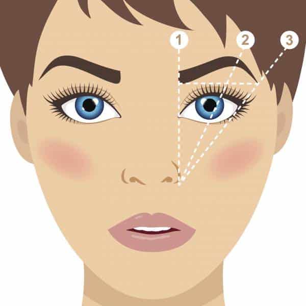 - Почнемо з найважливішого – намітимо початок вигину і відповідно «хвостик» брів. Нам знадобиться довга кисть. Розташовуємо її паралельно носі. Початок верхньої точки інструменту, повинна перетинатися з бровою. У цьому місці, консилером ставимо «зарубку».