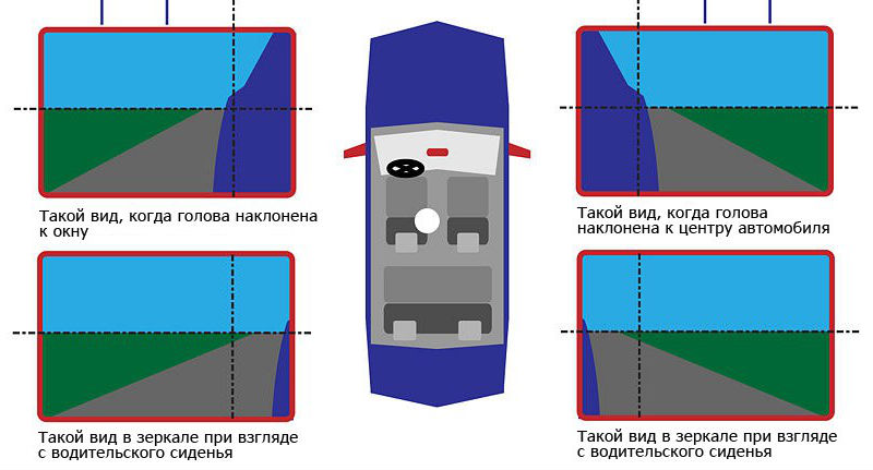 Вид з дзеркал повинен бути достатнім при перекладі очей на них. Мається на увазі, що не потрібно крутити головою, нахилятися або підводитися, щоб подивитися в дзеркало. Правильна настройка дає можливість отримати максимум інформації при перекладі погляду на дзеркала.