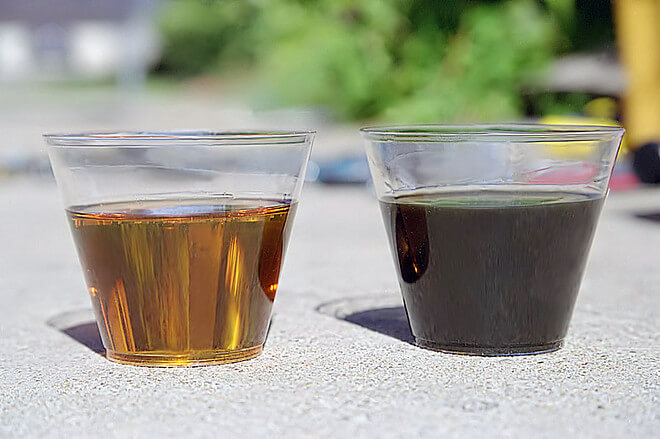 - Запах масла в АКПП. Незалежно від кольору масла, обов’язково потрібно перевірити його запах. Як відомо, в автоматичній коробці передач присутні фрикційні диски, що є аналогом зчеплення. Якщо вчасно не проводити заміну масла і фільтра, масла почне проявлятися горілий запах від зносу фрикціонів. Сильний горілий запах олії говорить про те, що фрикционы зношені, і незабаром буде потрібно серйозний ремонт коробки передач.