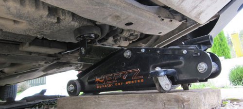 Зверніть увагу: якщо двигун вашої моделі машини розташовується в задній частині, то піднімати домкратом необхідно її;