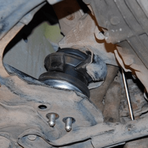 Якщо при перевірці було виявлено люфт, необхідно перевірити, чи добре затягнута опора двигуна. Для цього потрібно буде знову встановити передню частину автомобіля на домкрат і спробувати затягти опору двигуна.