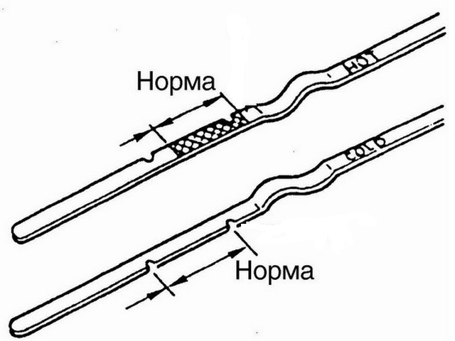Слід зазначити, що іноді виробники поміщають на щуп два написи – COLD та HOT. У такому випадку водій може бачити, який рівень масла повинен бути на заведеному двигуні, а який на заглушеному двигуні. В окремих ситуаціях можна зустріти написи на щупі FULL і ADD, які вказують максимальний і мінімальний рівень масла при заведеному двигуні.