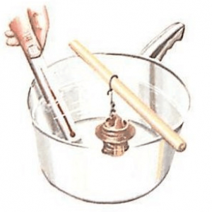 Підвісьте в каструлі термостат таким чином, щоб він був занурений у воду, але при цьому не торкався стінок та дна ємності, тобто стикався тільки з водою;Якщо клапан при нагріванні води відкривається, відстежте його поведінка при охолодженні рідини, перевіривши, на якій температурі він повернеться у вихідне положення. На підставі отриманих даних зробіть висновок про працездатність термостата.