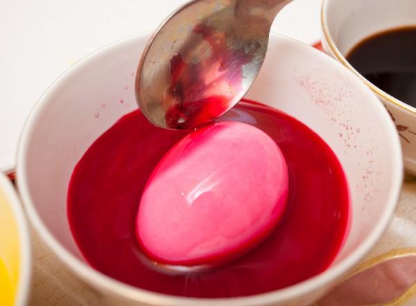 Після 3 — 4 годин яєчна шкаралупа забарвиться ніжно-рожевим кольором. Більш довгий період фарбування зробить їх відтінок більш глибоким і близьким до бордового.