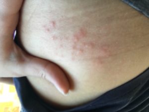 Дуже часто висип на сідницях і стегнах з’являється із-за алергії. Реакція у вигляді прищів може виникати на миючий засіб, білизна з вовни, неякісну і невідповідну косметику, лікарські препарати, а також гормональні таблетки. У цьому випадку необхідно пропити курс антигістамінних препаратів, по можливості захистити себе від речовин, які викликають алергічні реакції.