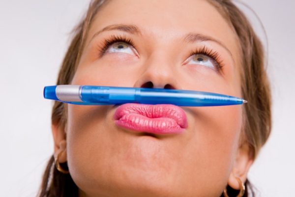 - Качаємо м’язи. Взявши ручку або олівець, треба затиснути предмет між верхньою губою і носом. Треба утримувати його, поки м’язи не втомляться. Трохи перепочивши, вправу треба повторити 5 разів.