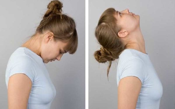 - Розминаємо шию. Ставши рівно і розслабивши плечі потрібно опустити підборіддя до грудей. Потім повільно треба їм дотягнутися спочатку до одного плеча, а потім до іншого. Наприкінці голова закидається назад. Всього потрібно 20 повторень.