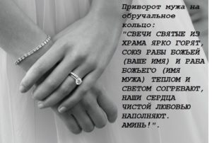 Щоб зберегти родину або позбавитися від потенційної суперниці, дружина може зробити сильний приворот на чоловіка, використовуючи свою обручку. Крім головного атрибуту, необхідно роздобути носовичок дружина і 3 церковні свічки.