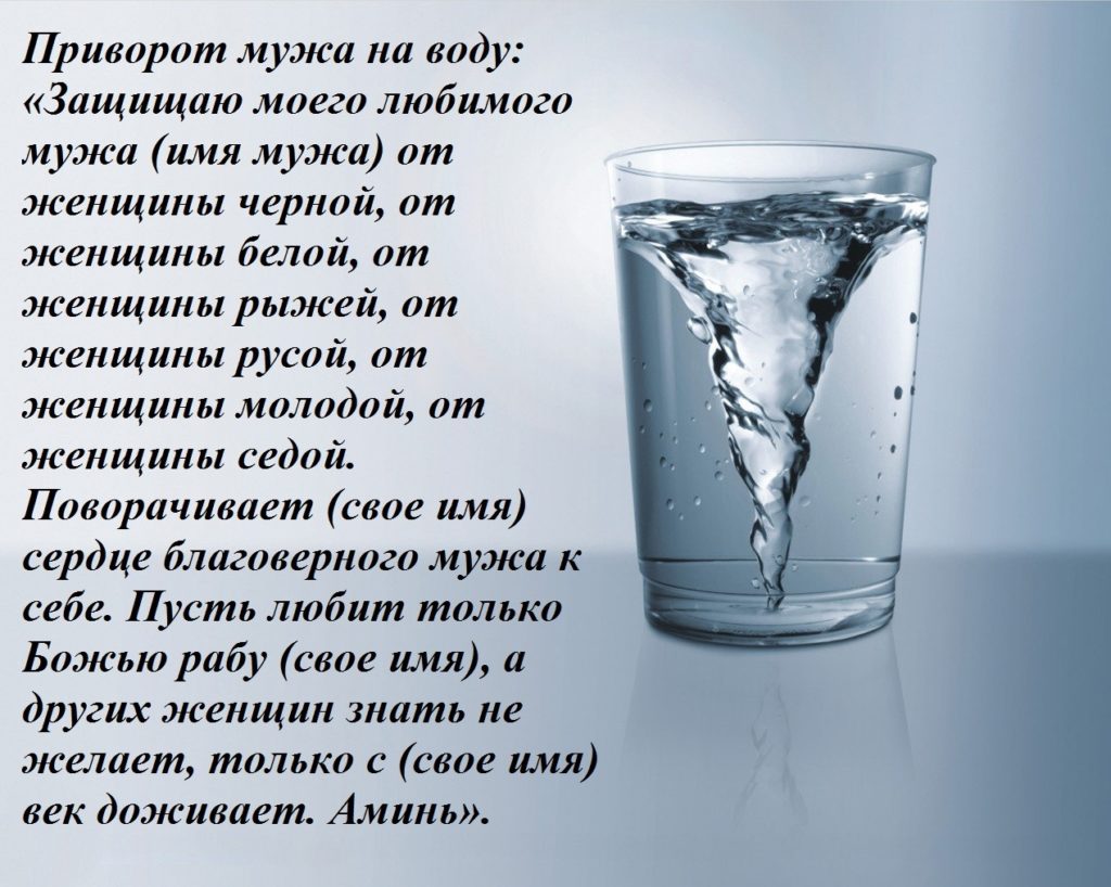 Слова приворотного тексту потрібно прочитати 12 разів. Заговоренную воду слід обережно підливати в чай, сік або будь-який інший напій, призначений для чоловіка.