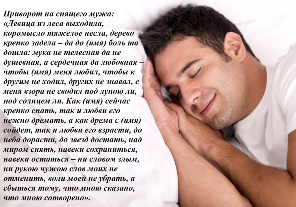Будь-яке магічне вплив на сплячої людини дуже ризиковано, так як енергетика людини в стані сну значно слабшає. Привороти – не виняток. Щоб приворожити коханого чоловіка, поки він спить, досить 3 рази пошепки прочитати текст приворотного змови. Ефект буде помітний вже на наступний день.