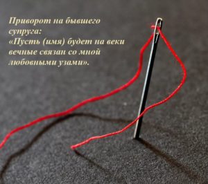 Фото подружжя потрібно зшити по краях за допомогою голки і червоної нитки. Стібки слід робити частими. Пошивши фотокартки лицьовою стороною один до одного, заговорщику потрібно обірвати нитку і прочитати слова привороту.