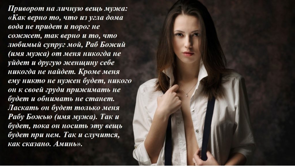 Якщо чоловік пішов з дому до суперниці, можна провести нескладний приворотный обряд з його особистою річчю. В якості особистої речі бажано використовувати одяг. В ідеалі таке приворотне дію краще проводити з використанням нижньої білизни дружина. Втім, цілком підійде і сорочка або краватку.