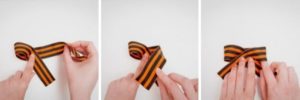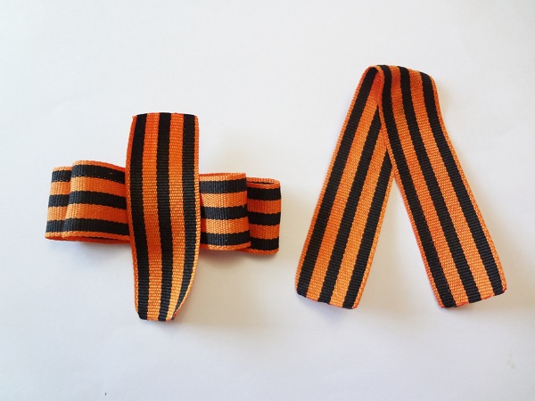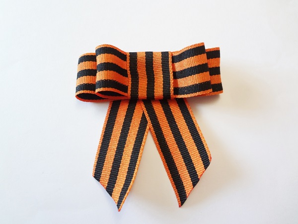 Якщо хочеться підкреслити урочистість і святковість події, георгіївську стрічку можна зав’язати самими різними способами. Для того щоб змайструвати оригінальний виріб, слід взяти відрізок близько 40 см і слідувати схемі, як правильно зав’язувати георгіївську стрічку бантиком.