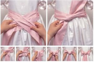 Святковий варіант включає широкий бант, який роблять на сукні: