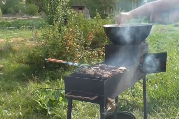 Зробити саморобну конструкцію для смаження м’яса можна просто і швидко. Найголовніше, щоб був лист товщиною не менше 3 мм, зварювання і болгарка. А решта справа техніки.