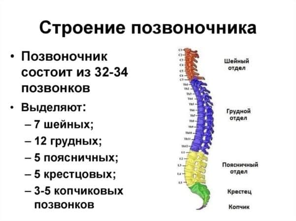 Хребетний стовп людини має S-подібну форму, володіє пружністю. Складається з 32-34 хребців, з’єднаних між собою хребетними дисками. Вони складаються з хрящової тканини, здатні шарнірно рухатися, завдяки чому тіло може нагинатися, повертатися. Це каркас організму, що має кілька відділів: