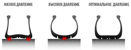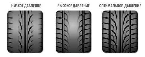 При цьому високий тиск в шинах зменшує площу зчеплення шини з дорогою, оскільки весь вага припадає на середину «бігової доріжки», і зайве тиск не дозволяє його оптимально розподілити по протектору шини. З цього випливає ряд очевидних недоліків підвищеного тиску в шинах: