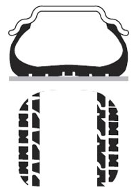 - Навантаження на середину «бігової доріжки» призводить до нерівному стирання протектора, що виливається у зменшення терміну експлуатації шини;