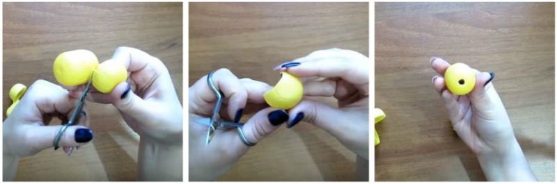 Або більш легкий варіант. Для нього нам знадобиться скрутити конус з пластиліну. А потім вирізати хвою за допомогою манікюрних ножиць. З боків злегка загинаємо кінці гілочок.