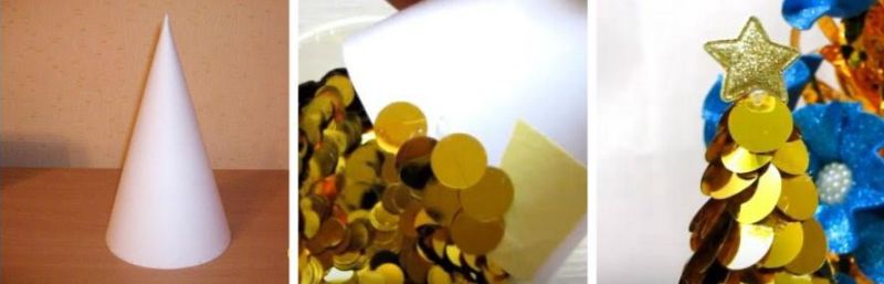 3. Верхівку прикрашаємо золотистої зіркою, яка кріпиться на гарячий клей.