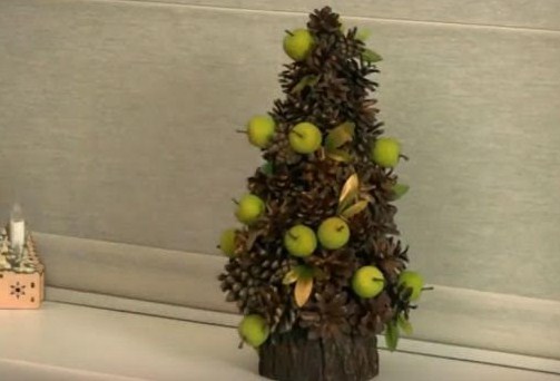 Який же може бути еко-ялинка? Ну звичайно ж зробленої з природних матеріалів! Ось таку ми змайструємо зараз — шалено красива і стильна. Для родзинки ми використовували в якості декору муляж зелених яблук.