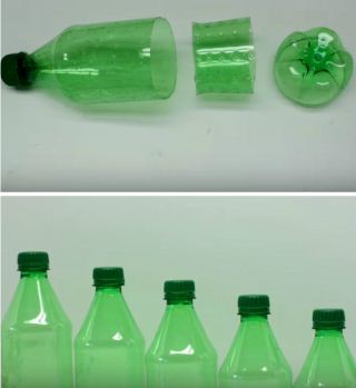 1. Відрізаємо від пляшок по 710 мл верхівку до початку фігурної частини. Кожна з деталей менше попередньої.