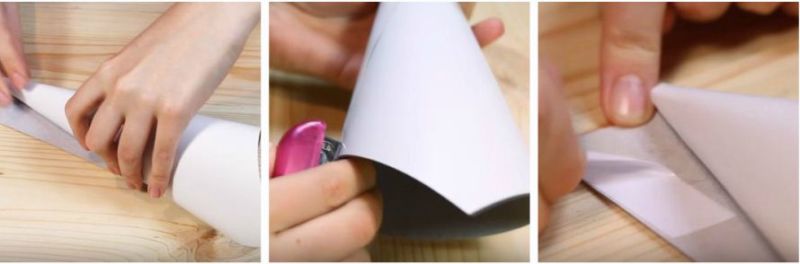 1. З аркуша паперу робимо конус, закріплюємо його. Зайвий папір обрізаємо. Про це ми вже розповідали у першому пункті статті.